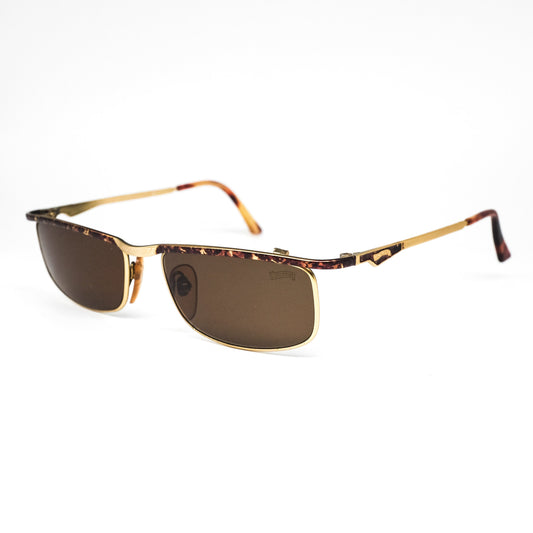 Winchester square light golden metallic sunglasses with brown tortoise browline NOS made in italy