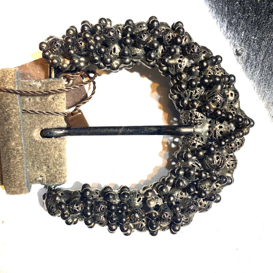 Wonderful brown suede belt with casted / sculpted buckle, NOS 90s ITA