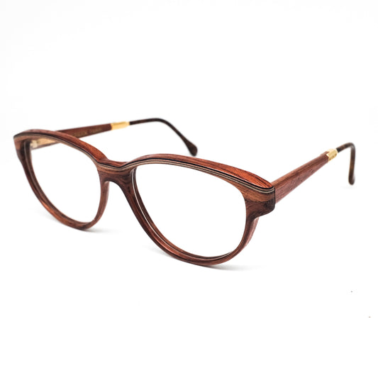 WOODLOOK paris dark textured wood oval round glasses frames with tortoise acetate temple tips. 80s, new old stock