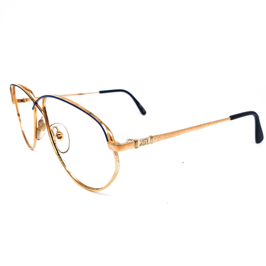 YSL Saint Laurent 393 large silm golden metallic droplet eyeglasses frames with unusual black crossed nose bridge design, 1980s NOS France.
