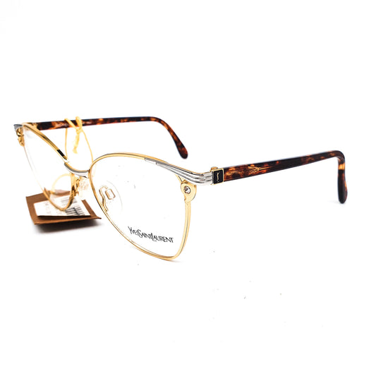 YSL Saint Laurent 4011 gold/silver minimal cateye eyeglasses, 80s nos Italy