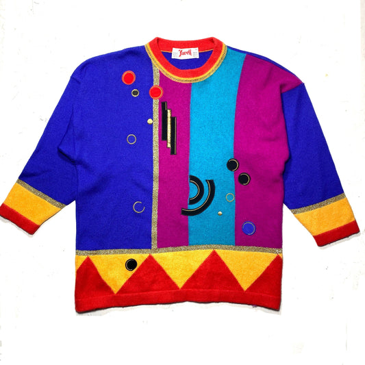 Yarell colorful embroidered wool blend ladies pullover, 1980s mint condition sz 40