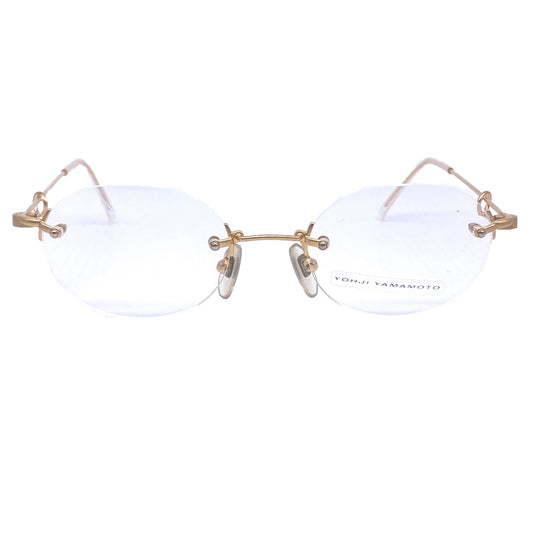 Yohji yamamoto 51-4114 rimless oval matte gold 23k gold plates eyeglasses frames, Japan 1990s NOS