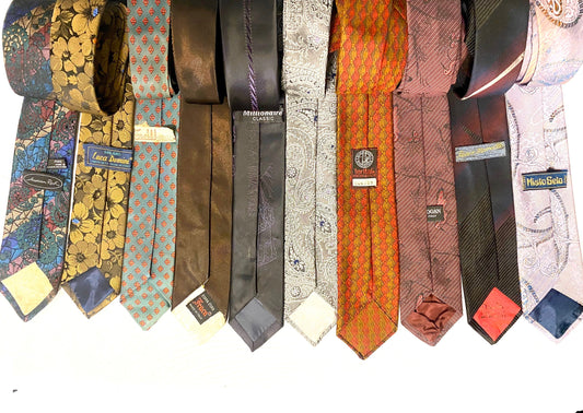 1970s skinny ties, many designs, super cool and contemporary prints / styles
