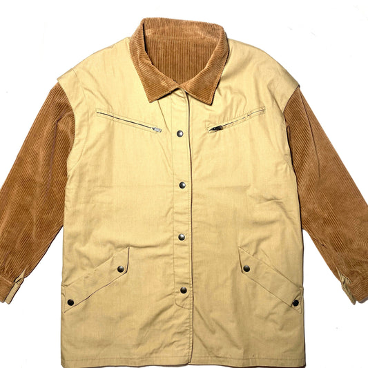 1970s ladies hunter style reversible beige canvas/ brown corduroy jacket, new old stock & perfect