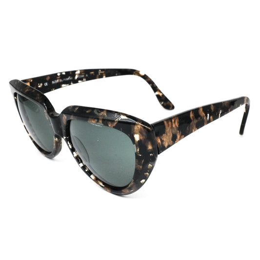 Agora by Polaroid 8394 vintage black brown tortoise acetate cat eye sunglasses with black lenses, 1990s NOS. Framed in Italy