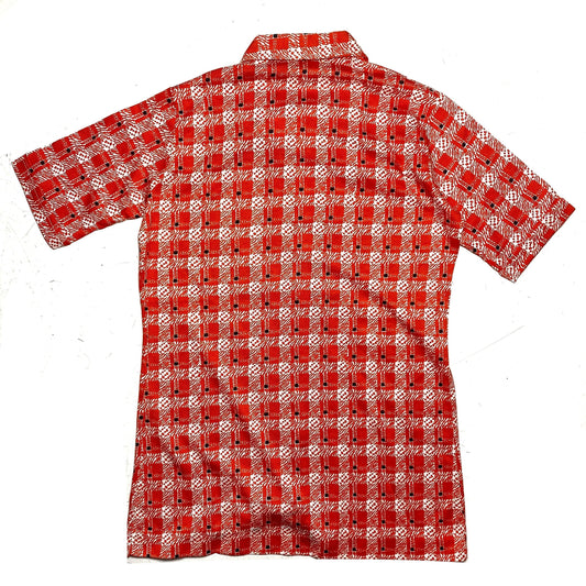 70s Mod flashy checkered red/white shirt with rounded beagle collar, new & unworn