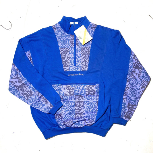 90s graffiti hip blue sweatshirt made in Italy by GreenStone, cool abstract inserts with surfer profiles, new w/tags