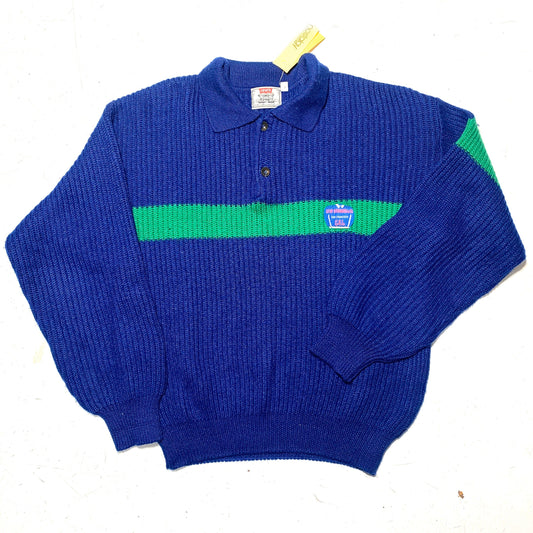 Levi’s 80s blue ribbed wool pullover with horizontal green stripe, mint condition