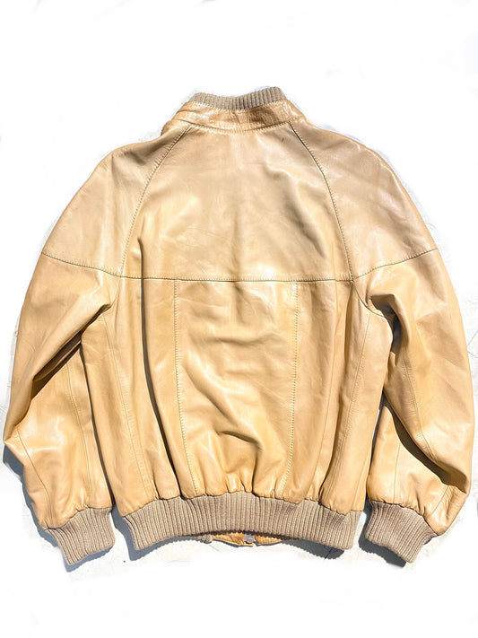 Lilian beige lambskin leather bomber jacket w satin lining, Italy 1980s NoS