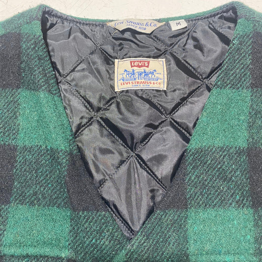 Levi’s western style green / black checkered wool vest with leather buttons in Great condition