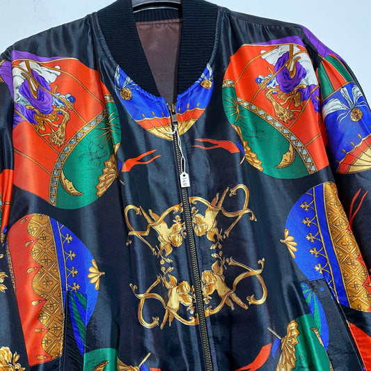 Lovely Hermes style baroque angels sun & moon satin bomber jacket.