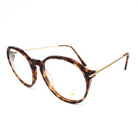 Look round gold metallic eyeglasses frames made in italy with tortoise cable rim, 1980s nos