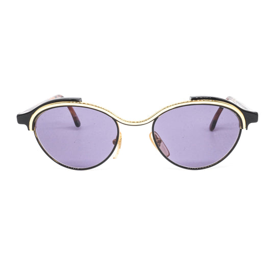 Lozza Japan 866 round black/ gold cello/metal sunglasse and brown tortoise temples. 80s NOS Italy