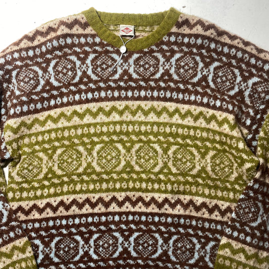 Martin Guy 80s softest wool/alpaca blend winter knitted jumper, green brown and turquoise geometrical allover, NOS 80s Italy