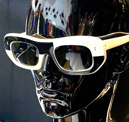 Rare 1960s half black half white sunglasses, oversized cateye with asymmetric print, NOS mint