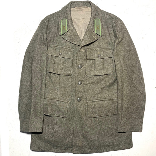 Swedish army 1952 military greyish Green wool field jacket with jack Pockets, artillery patches, mint