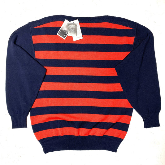 Ted Lapidus Paris pure new merino Wool red/navy striped sailor style jumper, 1980s NOS