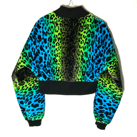 Versace HM acid green cheetah baroque velvet bomber jacket, mint condition, 2 available in sizes 36 & 38