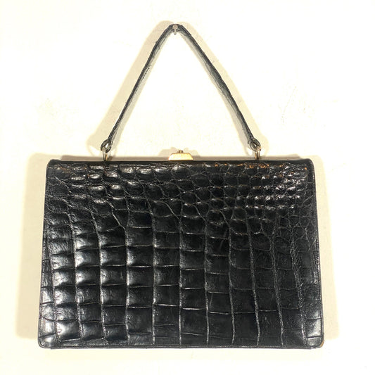 Black alligator hand bag made in Italy in the 50s /60s , great condition