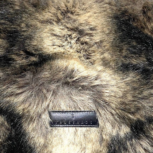 Trussardi 90s faux fur hand bag with black leather handles, in mint condition