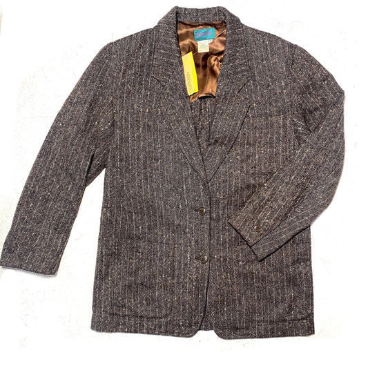 Kenzo Paris sz 38 ladies blazer, grayish brown pinstripe pure new wool jacket made in France, 80s mint condition