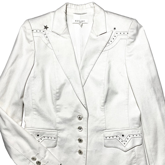Escada white cotton western style blazer jacket sz 36 made in Germany 80s mint