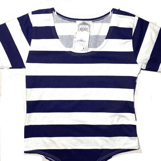 Rodi NWT 80s sailor style white/navy striped cotton bodysuit, new with tags and mint