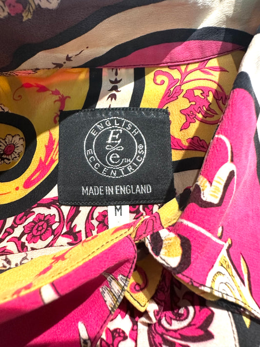 English Eccentrics pure silk baroque print shirt in purple, burgundy & mustard, sz M mint