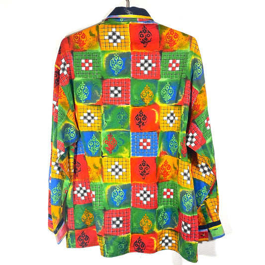 Versus Versace 90s colorful cotton shirt, checkered with batik alike print, in mint condition.