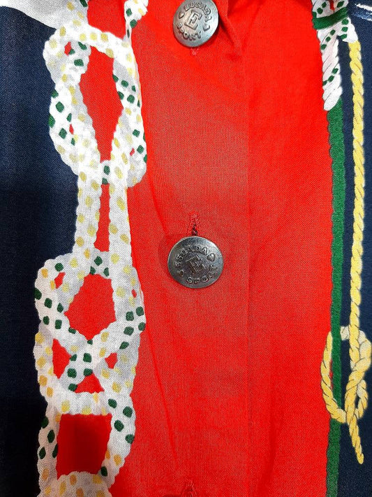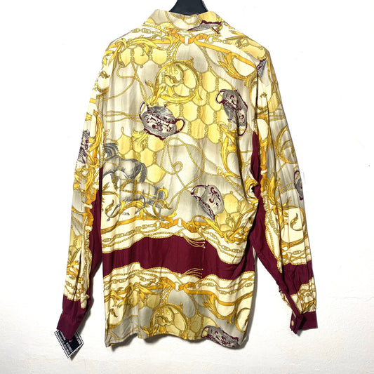 Incredible baroque chain print shirt with horses and teapots allover, beautiful viscose fabric, 80s and mint