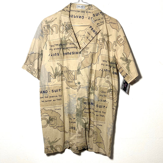 Hom 80s Mexico gulf map print aloha style beige short sleeve shirt, mint condition