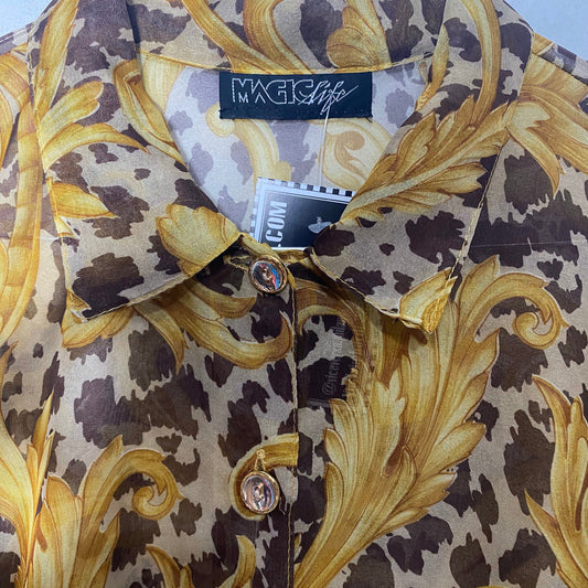 Baroque Versace style cheetah / achantus leaves print shirt made in Italy by Magic life, 80s mint condition