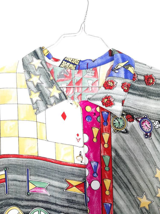 Vintage short sleeved baroque oversized shirt 80s in mint condition bizarre playing cards print