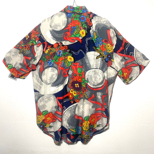 Baroque floral blouse with colorful bouquets allover, querci della villa Italy 80s mint