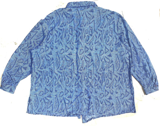1990 Avi Blue abstract graffiti allover rib knit viscose shirt, oversized fit