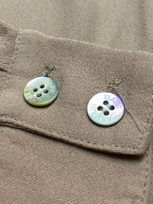 Armani Jeans stunning pink- black satin blouse with silver metallic insert, sz 42