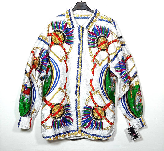 Baroque satin indian print long sleeved shirt, funny elephant / chains print allover, mint condition