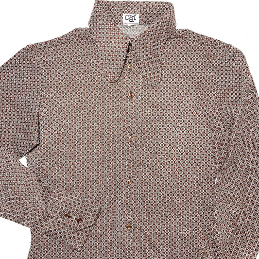 Cam brown/white beagle neck shirt, jacquard knit geometrical allover, made in Italy 1970 NOS in perfect condition