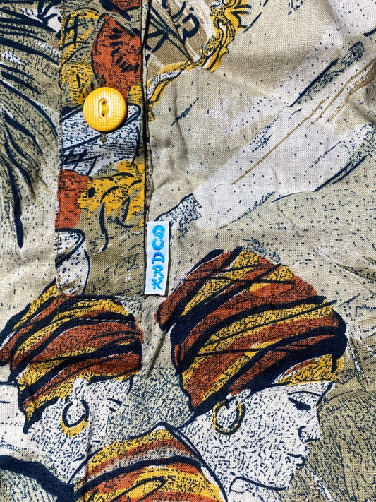 Cotton shirt with Brazil Coffe plants themed allover print, 80s mint condition