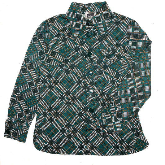 Luisa Spagnoli 70s green checks cotton blouse with beagle collar and chest pocket, mint sz 44