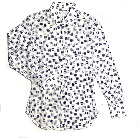 Rao tailors 1960s abstract allover white light cotton popeline shirt, very good condition