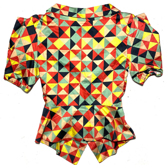 Vivienne Westwood anglomania Harlequin geometrical allover blouse sz 42, Italy mint condition
