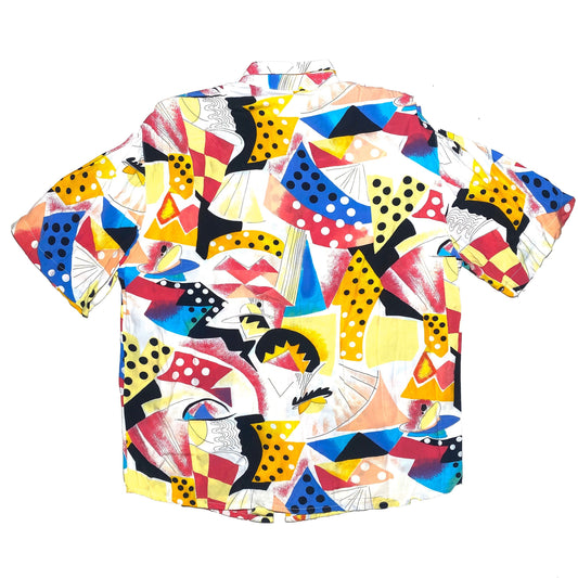 Colorful abstract allover short sleeved shirt made in a finest viscose fabric, mint condition