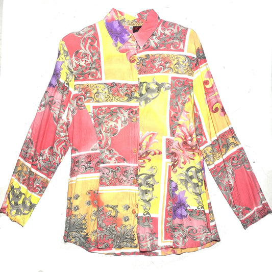 Role Baroque sunset pastel colors blouse made in Italy, 80s mint condition sz 42 M