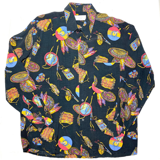 Harris Look 80s black shirt with navajo paraphernalia allover, new old stock made in Italy 2 pcs available