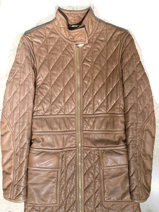 Gucci 1990s long quilted soft tan leather ladies coat, size 38 / S