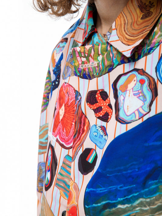 Kids of Broken Future mix Fossils colorful trenchcoat sz L, BNWT