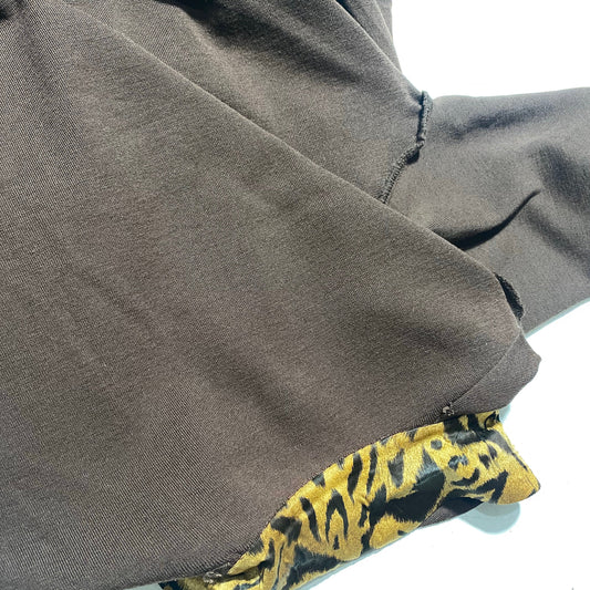 Brown fine wool button up jumper with animalier silk coated front, buttons and collar. artisanal/sartorial make, finest finishings