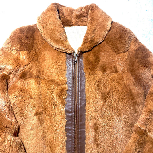 Scoat 1970s real fur fox brown short hair coat with brown leather details. super warm and nicely tailored